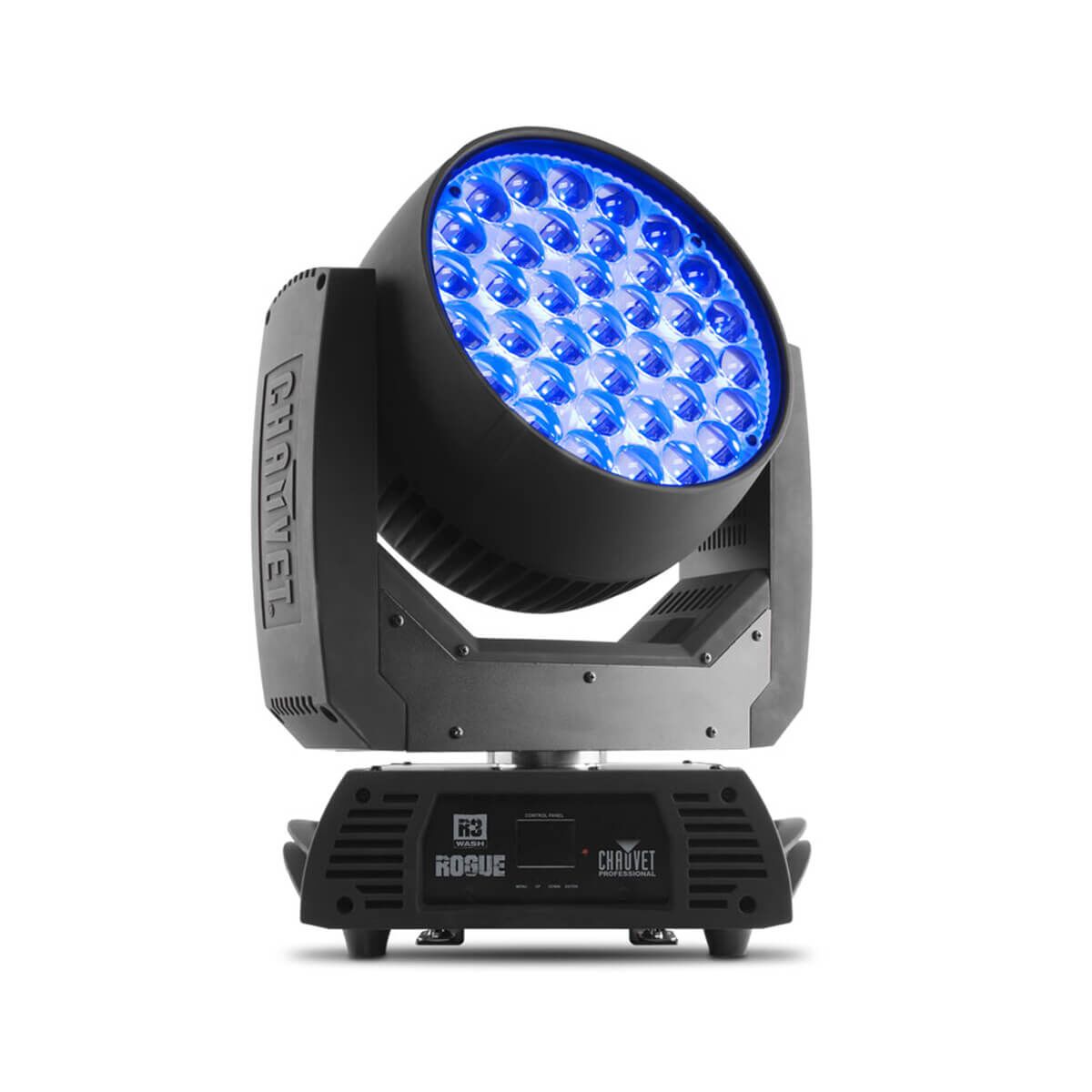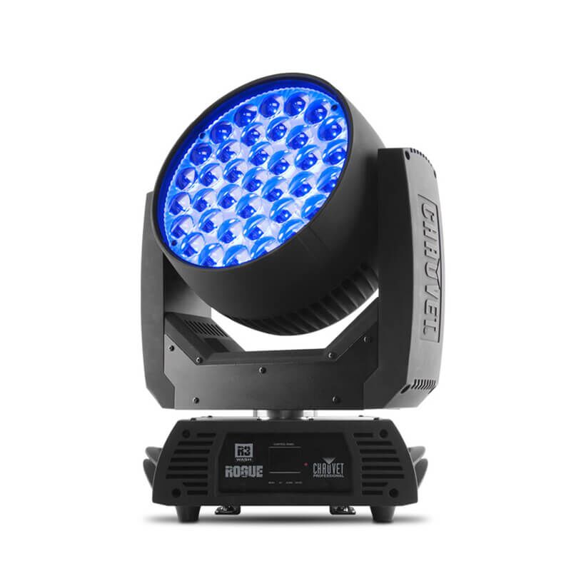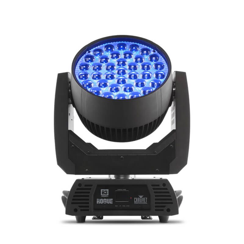 Unlock the creative power of the Chauvet R3 Wash — a fixture designed for lighting professionals who demand versatility and impact. With 37 quad-colour RGBW LEDs rated at 15 W each, this moving head provides vibrant colour washes and bold mid-air effects. The nine‐zone LED configuration enables pixel-mapping for standout visual motion and layering. A motorised zoom delivers beam angles from approx. 12° to 49°, giving you adaptability for washes, beams and everything in between. Controlled via DMX-512 or RDM with multiple channel modes and an intuitive OLED menu interface, the Chauvet R3 Wash supports 16-bit dimming and smooth colour transitions. The housing includes locking PowerCON in/out for power daisy-chaining, 3-pin and 5-pin DMX connectors, and a rugged mounting bracket system.