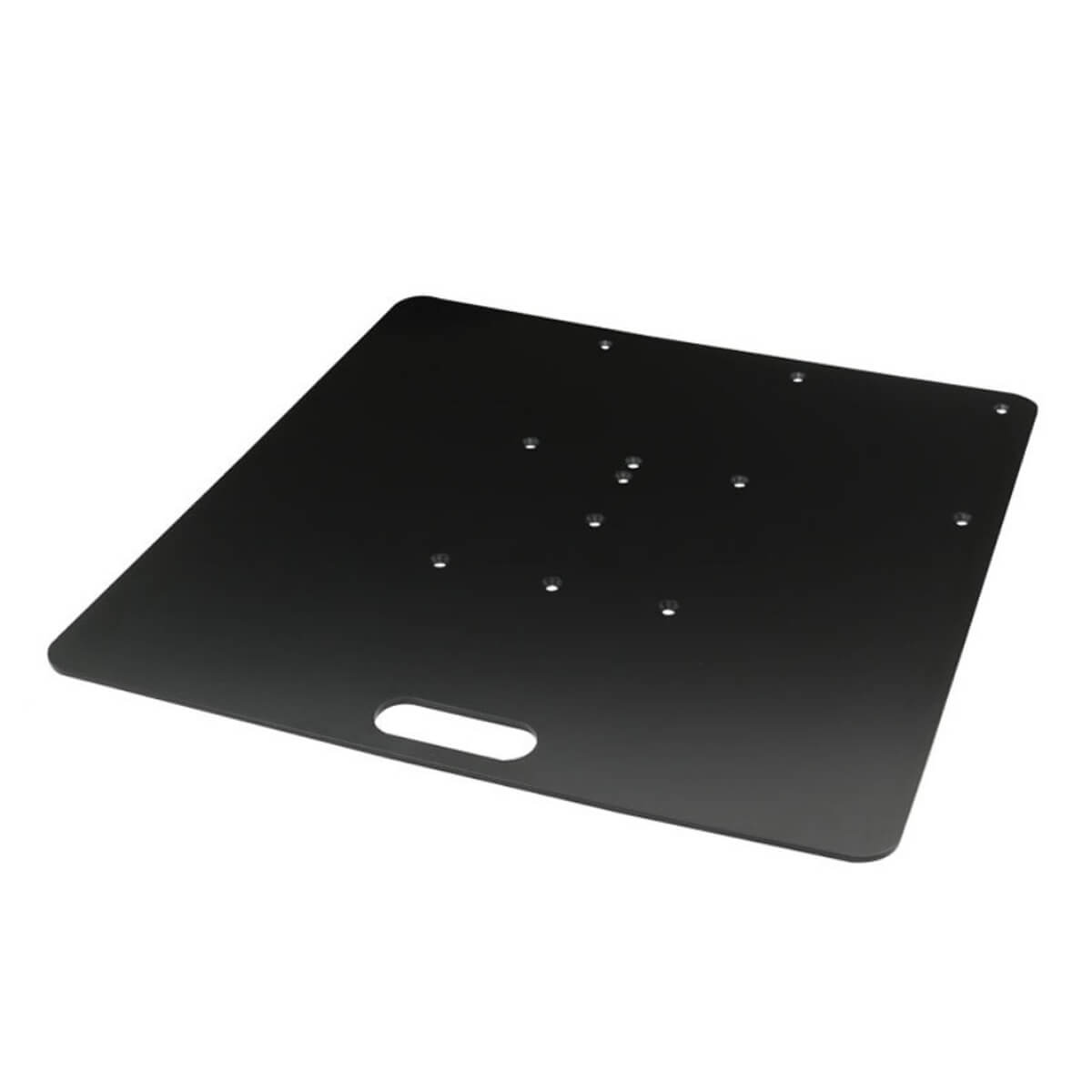 The Global Truss UBP800 base plate offers high-performance rigging support in a compact footprint. With its 800 × 800 mm tabletop sized footprint and precision-machined hole-pattern, this plate is compatible with the F31 to F34 truss families and many equivalent 290 mm systems. Manufactured in the UK from laser-cut, heavy-gauge steel and finished in a professional black powder coat, it is built for long service life in demanding environments. The universal hole layout means you won’t need customised adaptors, reducing installation time and simplifying logistics. A convenient carry-handle makes handling easier and safer. Ideal for touring, exhibition stands, live event infrastructure and permanent installations, the UBP800 is the smart choice for professionals who demand rugged, flexible rigging foundations.