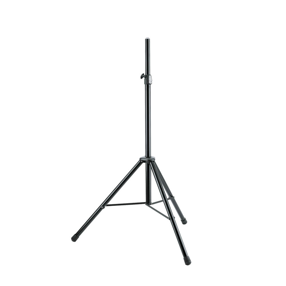 The K&M 21435 Speaker Stand combines strength, precision control, and practical portability. Its steel tubing (35 mm diameter) delivers robust structural support, while the push-button clamp allows effortless height transitions. A locking screw ensures your speaker stays firmly in place without vibration. Equipped with large fixed foot end caps and cross-braced legs, it maintains excellent traction and safety on various floor surfaces. Additional features include a pull-out guard for the extension tube, a mounting aid to ease speaker installation, and an integral shock absorber to minimise sudden impacts. When folded, the 21435 speaker stand compacts to 1,150 mm, making storage or travel more manageable.