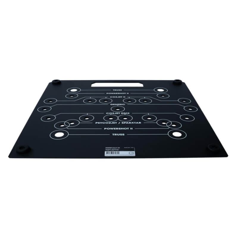 Designed for versatility and durability, the MagicFX Baseplate II accommodates various MagicFX products, including up to four Powershot II units or two CO2JET II units. Its stainless steel construction ensures longevity, while the rubber feet provide stability when placed on stage. For truss mounting, the plate is equipped with four mounting holes, offering compatibility with different truss brands. A built-in handle facilitates easy transportation, and included fasteners simplify the mounting process. Whether you’re enhancing a concert, theatre production, or corporate event, the Baseplate II ensures your FX units are securely positioned for optimal performance.