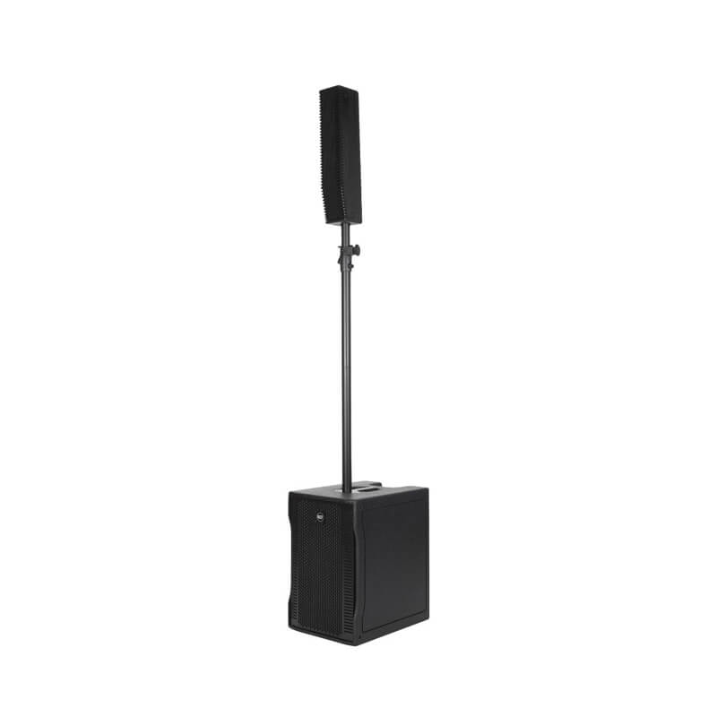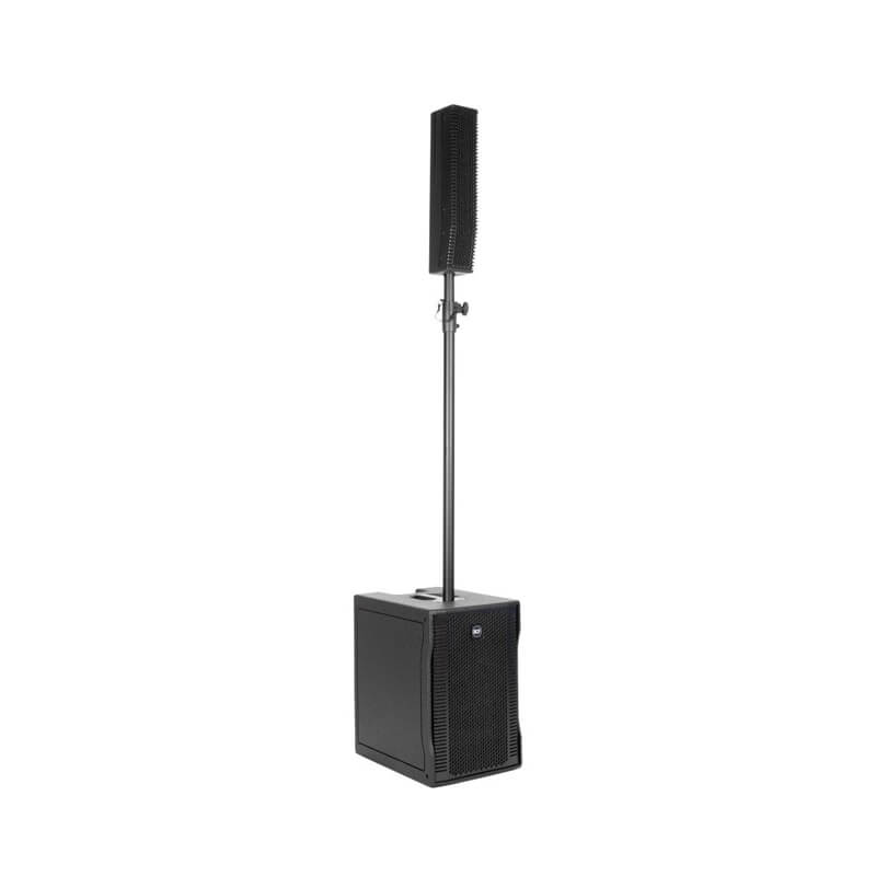 The RCF EVOX 8 Active is a compact, portable two-way column array system. It blends a 12″ woofer with eight 2″ drivers to deliver wide, coherent audio coverage across 120° horizontal and 30° vertical angles. Driven by a 1,400 W Class D amplifier and enhanced with FiRPHASE DSP processing, it achieves up to 128 dB SPL with clarity and low distortion. The system includes crossover filters at 220 Hz, thermal/RMS protection, and selectable input sensitivity. Designed with birch plywood construction, ergonomic handles, and pole-mount compatibility, EVOX 8 ensures dependable performance across live, speech, and DJ applications.