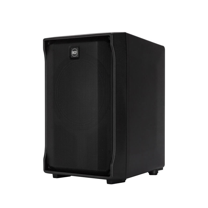 The RCF EVOX J8 Active is a two-way portable array system combining a line source satellite with eight 2″ full-range drivers and a high-power 12″ woofer in a bass-reflex enclosure. All powered by onboard 1,400 W Class-D amplification, the system features DSP processing with FiRPHASE technology for linear-phase output and consistent coverage. The J8 maintains a compact footprint and lightweight composite enclosure for portable, practical use. With rapid setup in a few steps, RCF EVOX J8 Active offers stunning clarity, musical response, and full-range capability.
