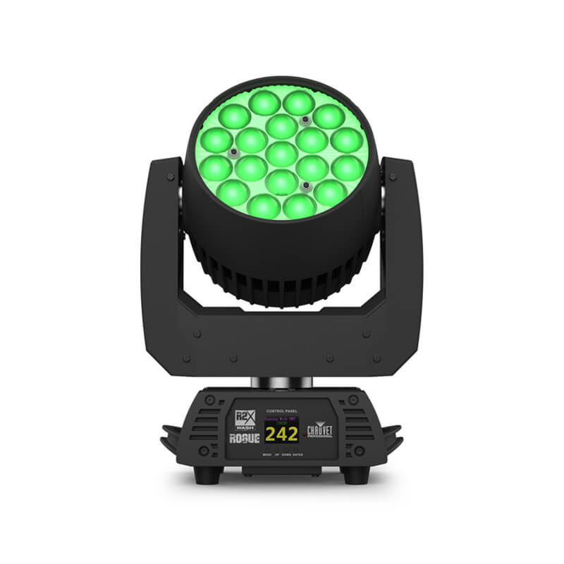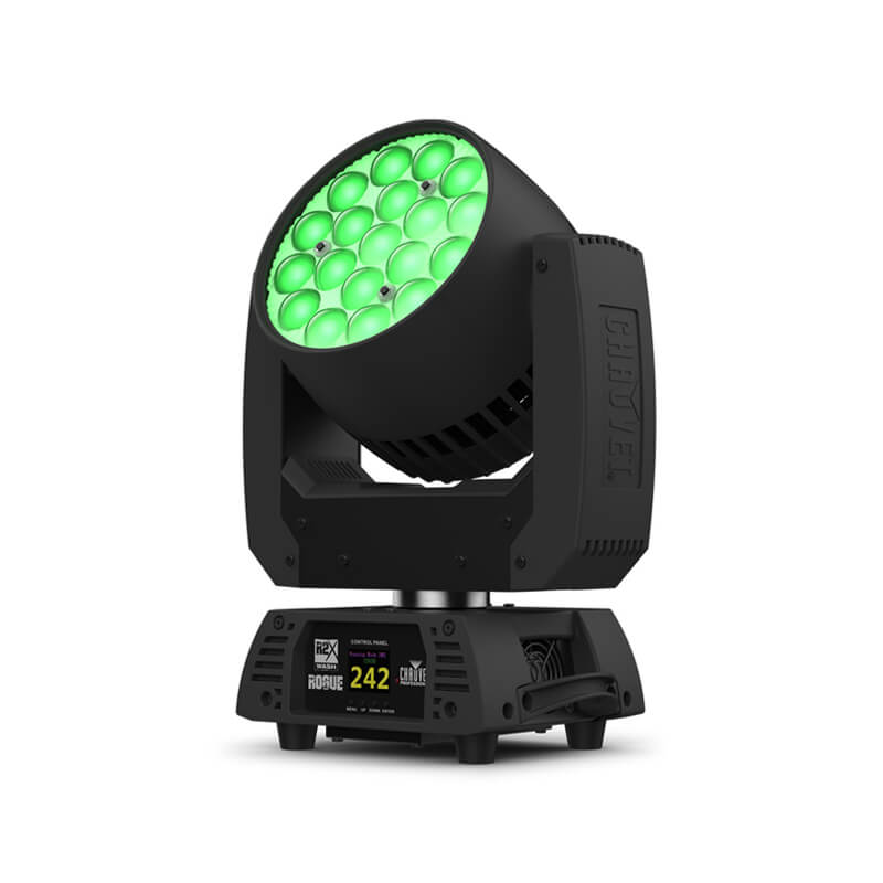 The Rogue R2X Wash combines high-end LED wash capabilities with advanced optical control and pixel-zone effects. Featuring 19 quad-colour RGBW LEDs rated at 25 W each, it generates deep, rich colours and bright output suited for stage, broadcast or corporate events. The motorised zoom ranges up to 64.3° field angle, enabling wide washes or more focused lighting. Five LED zones allow creative pixel control, while selectable PWM rates, 16-bit dimming, and selectable pan/tilt ranges deliver pro-level precision. With powerCON in/out, rugged housing and full DMX/RDM support, the R2X Wash is a versatile core fixture for any professional rig.
