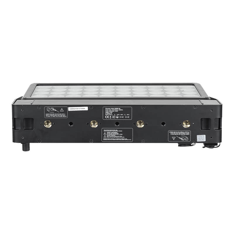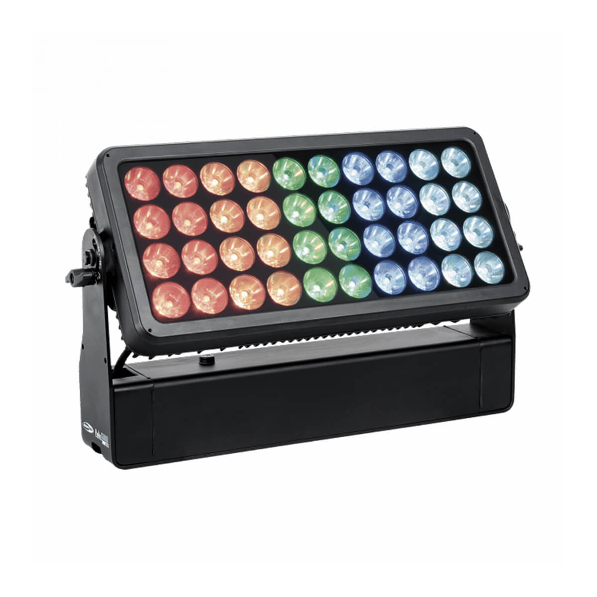The Showtec Helix S5000 Q4 is a bright 40x 10 watt RGBW LED Washer with IP65 rating, suitable for outdoor applications. Its 10° beam angle can be widened to a 20°, 40°, 15° x 60° and 90° beam angle by using a dedicated beam shaper. The Helix S5000 Q4 LEDs can be divided into 5 separate sections for creating stunning effects. The Wash can be manually flipped 180° and can be controlled via W-DMX (wireless), DMX and Master/Slave in Manual and Auto-run mode with many built-in programs. The wireless connection is compatible with older fixtures using W-DMX, provided that only one mode (G3) is used.
