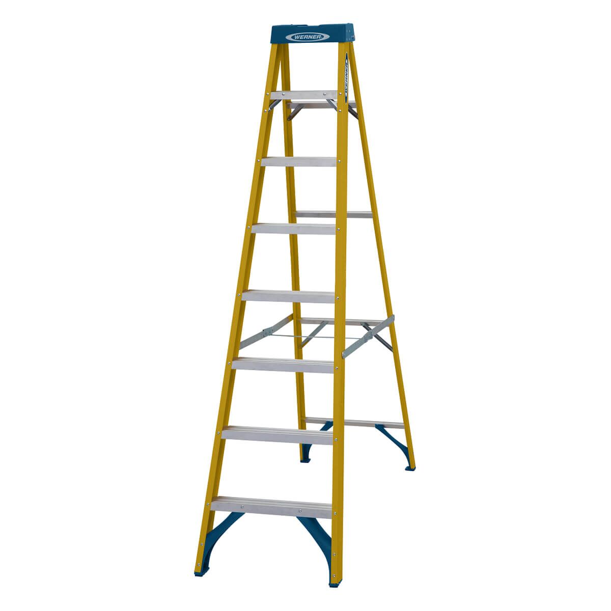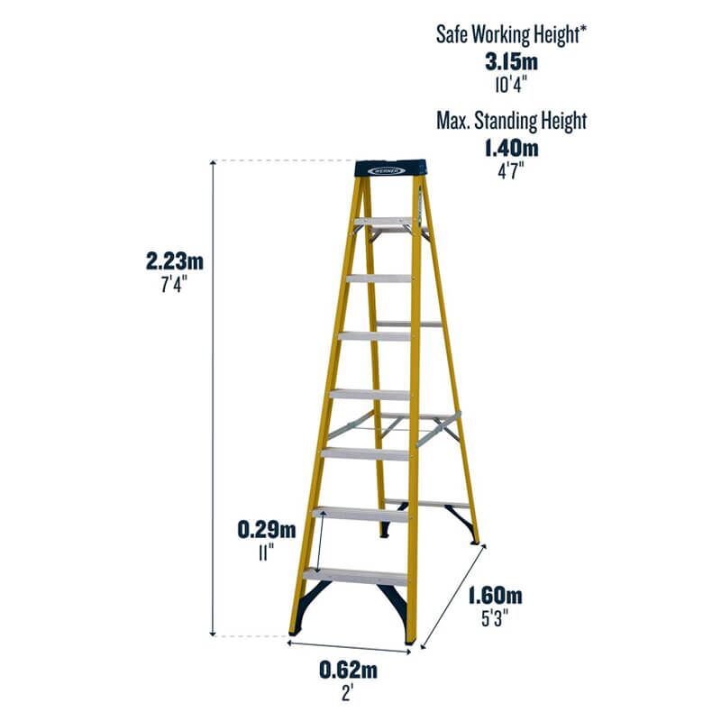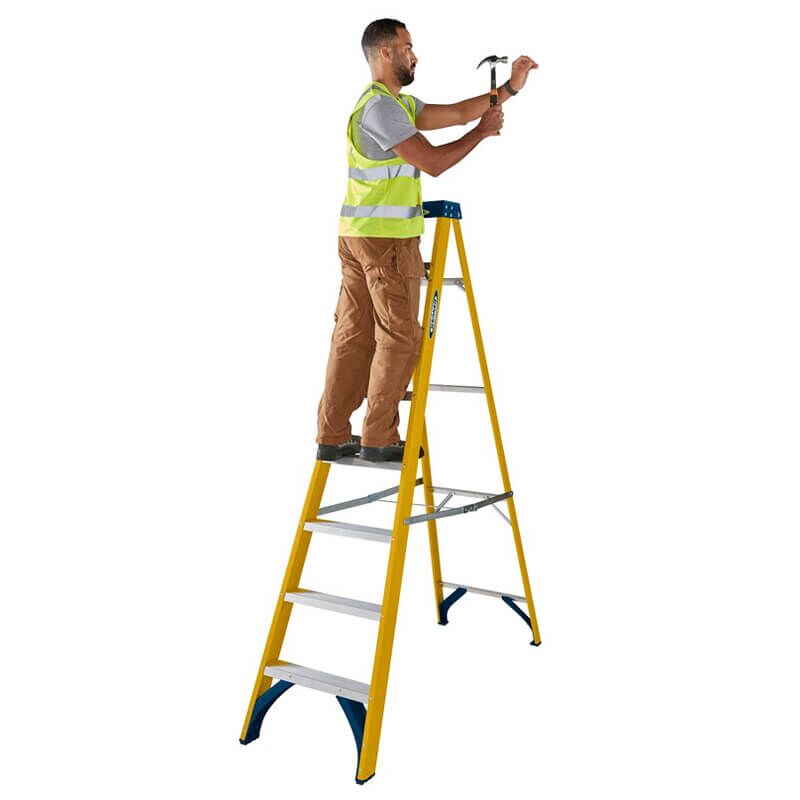 The Werner Fibreglass Stepladder 8 Treads – 2.2m is a professional-grade ladder designed for safety, durability, and convenience. Its non-conductive fibreglass construction makes it perfect for electrical work, while slip-resistant treads provide a stable and secure footing. The ladder features a top holster with tool holders for easy access to your tools and external spreaders for effortless setup. With a maximum load capacity of 150kg and EN131 certification, this ladder ensures reliability on any job site. Lightweight yet robust, it’s ideal for both indoor and outdoor tasks, helping professionals work efficiently and safely.